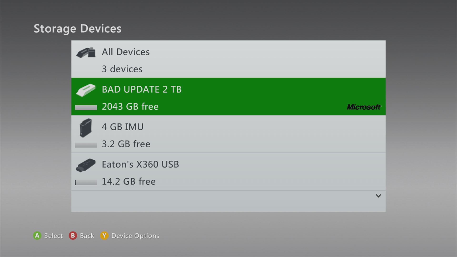 Bad Storage is the name of a new DLL module and XEX being open-sourced today. Xbox 360 homebrew software can utilize it to alter the kernel in a way that unlocks the maximum possible disk size up to 2 TB. Anyone can use it in their projects for free and without restriction. The source code is on GitHub and it is also included in the latest XeUnshackle.